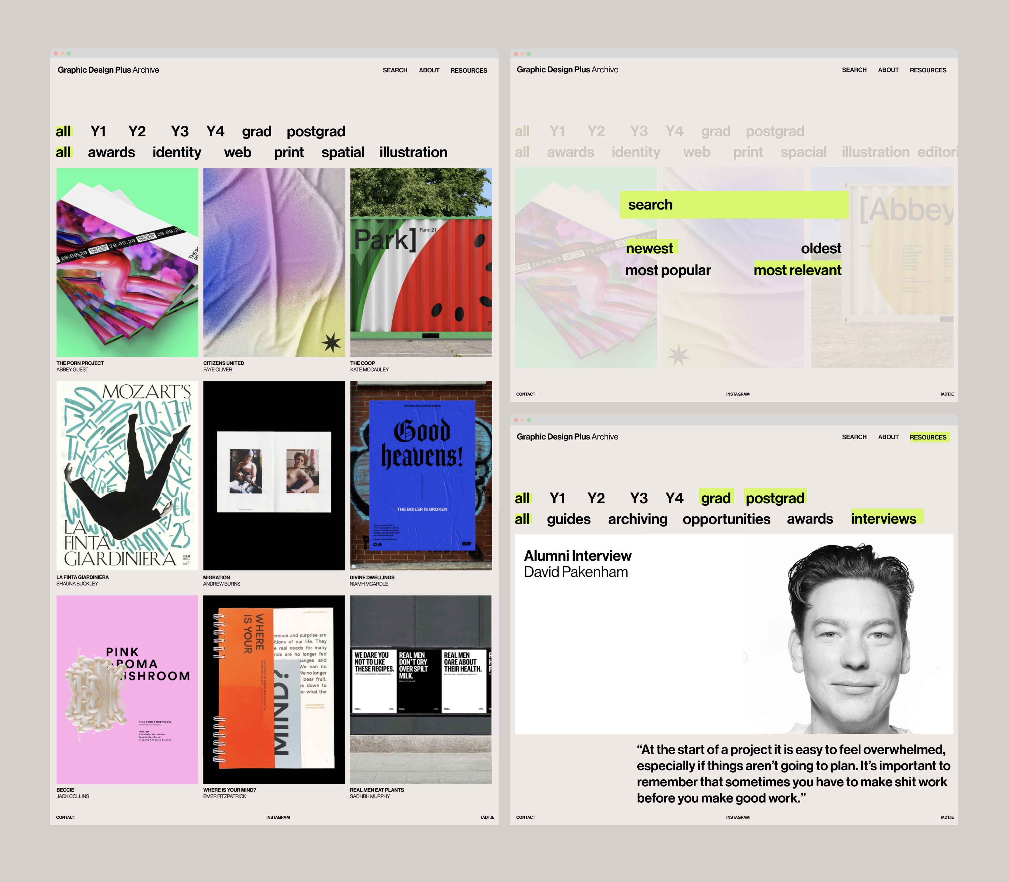 To create a new identity for IADT's Visual Communication Course in conjunction with its name change to Graphic Design Plus+ and build an archive for IADT's Visual Communication Course.